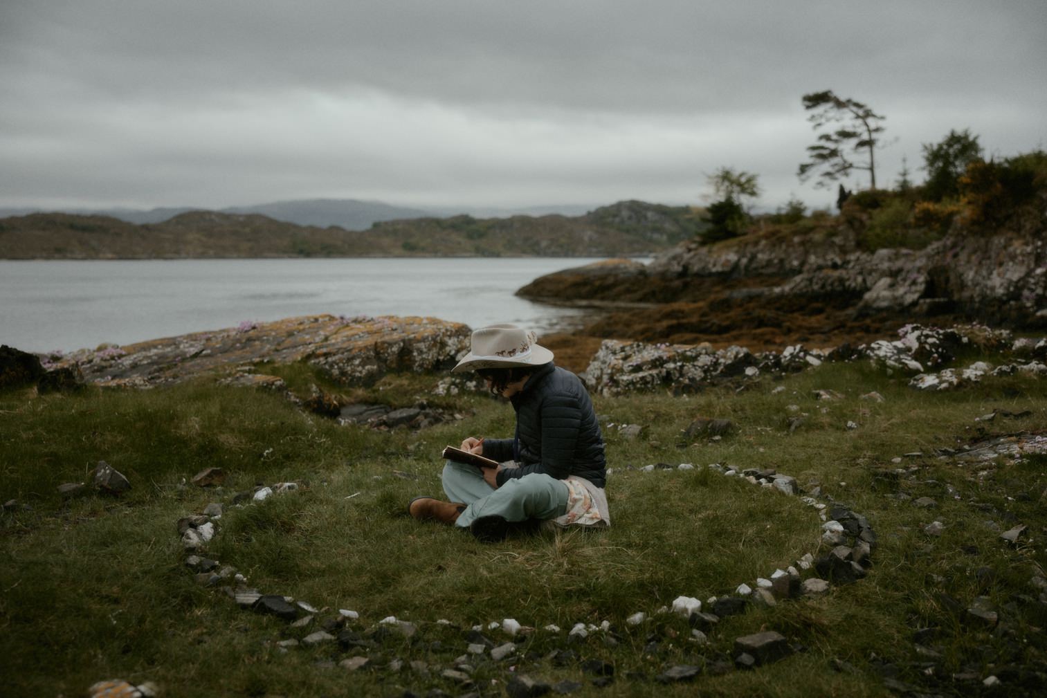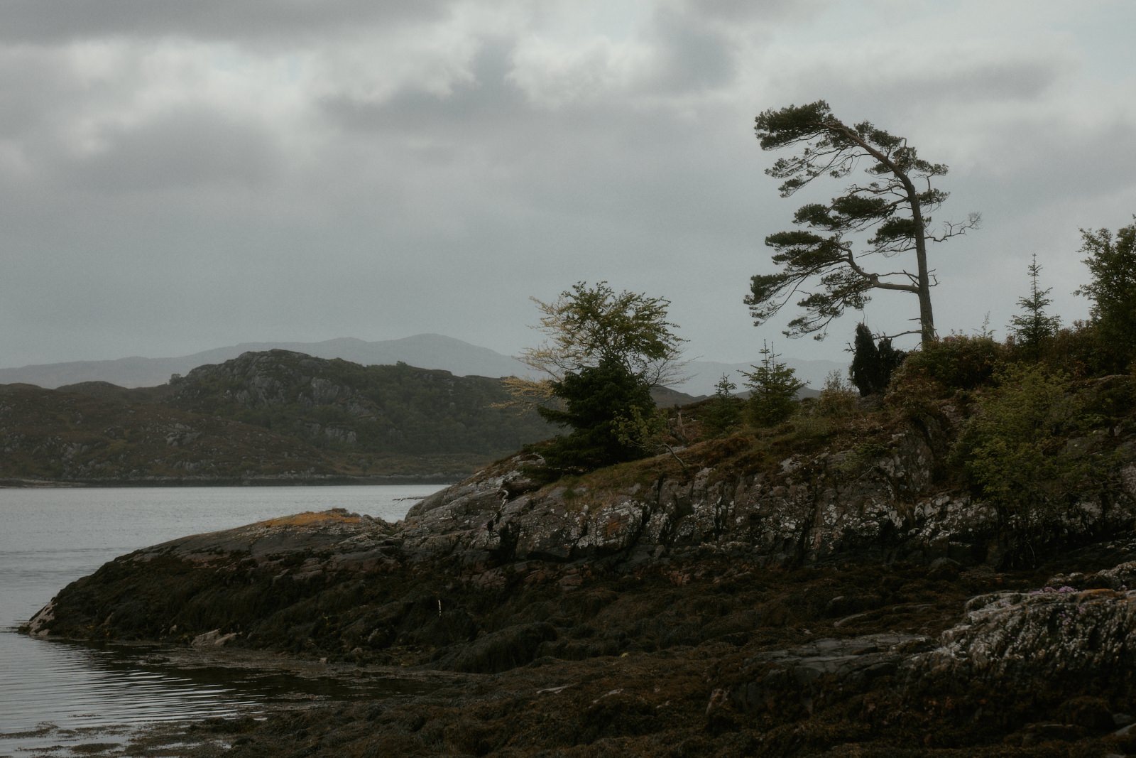 The day prior to their Eilean Shona wedding, Justin and Christina chose a location close by by the water for their outdoor ceremony. Rain, hail or shine they were determined to celebrate outside in the Scottish landscape.